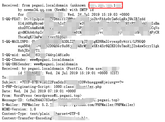 之前网站的管理邮箱收到了一封网站发来的邮件,本来以为服务器没开25端口(一般VPS都禁25端口防止滥发邮件)所以发不了邮件,但是仔细一看是服务器发过来的,本来倒也没什么,但是这仔细一看吓一跳,服务器IP直接就暴露在邮件发送地址中了……